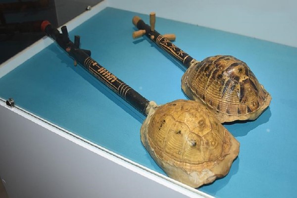 آلات موسيقية تم جلبها من أجزاء مختلفة من العالم. وتم إحضار بعضه من قرية جبلية في