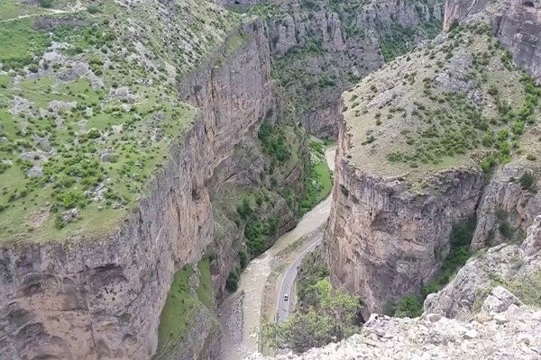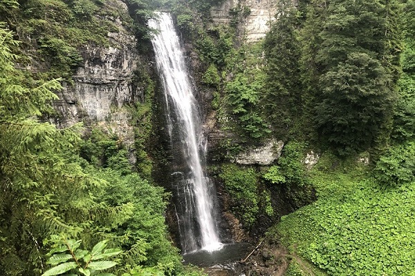 يتمتع بمنظر فريد على الرغم من أنه شلال صغير. أدى الماء إلى تآكل الصخور وشكّل مع مرور الوقت فتحة دائرية قطرها أربعة أمتار. فالشلال الذي يتدفق عبر هذه الفتحة هو الوحيد من نوعه من حيث هذا المنظر. وقد أطلق السكان المحليون علي الشلال الذي يتدفق من داخل صخرة مثقوبة.