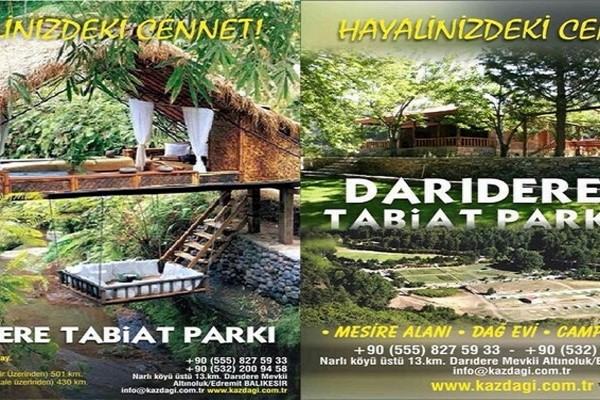 منتزه داريديره في إدرميت توجد في المنتزه أماكن للتخييم وأكواخ للتأجيروأماكن يمكنك شراء اللحوم من أجل الشواء وساحات خضراء وشلال.