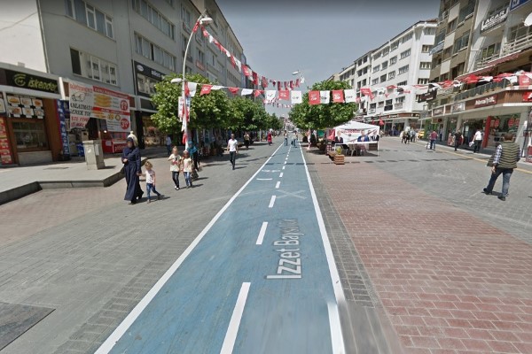 شارع عزت بايسال في قلب بولو شارع حيوي وملى بالحالات التجارية والمطاعم والمقاهي.