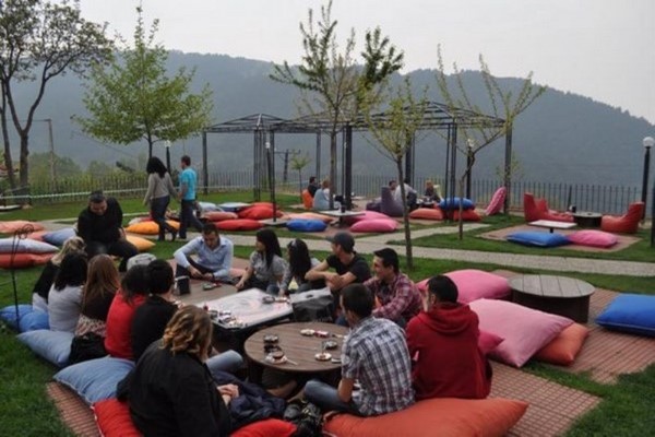 وبناته ويوجد حديقة فيها جلسات جميلة