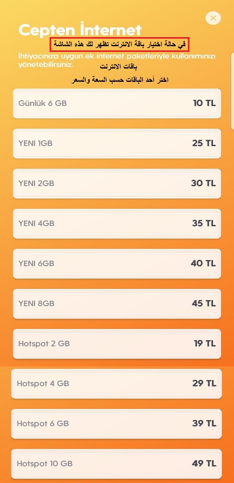 أو اختر باقات الانترنت