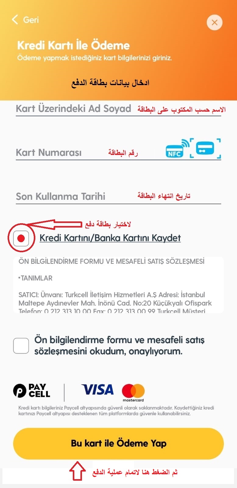 وإتمام عملية الدفع