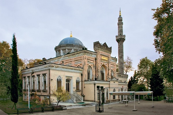 لارتفاع 40 متراً، من أهم ميزات الجامع أولا القبة الكبيرة بالوسط يحتويها قباب صغار, زُيِّنت بزخارف ملونة وذهبية, وتتربع على أربع قوائم تسمى بأرجل الفيل كما ويجذب