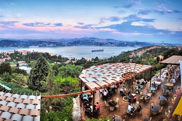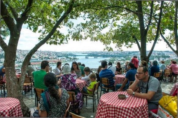 مقهى بيرلوتي مع اطلالة رائعة وخصوصا قبل الغروب ويمكن الذهاب إلى المقهى عن طريق الصعود اليه بالتلفريك الموجود بجانب جامع السلطان أيوب حيث الاجواء العليلة والاطلالة الرائعة على مدينة اسطنبول.