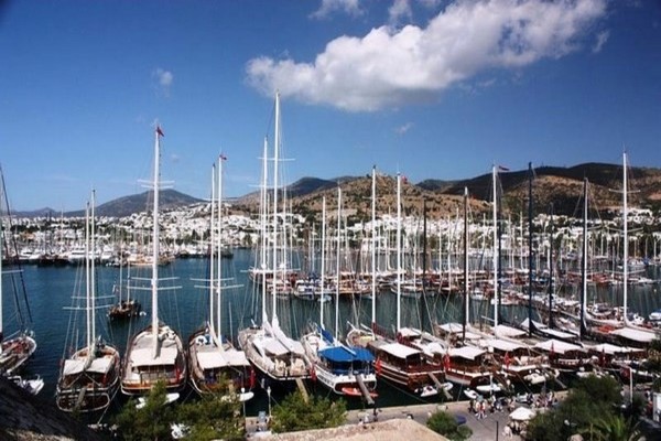 ميلتا مارينا بدروم في المدينة الساحلية في بدروم حيث يمكنك استئجار القوارب واليخوت.