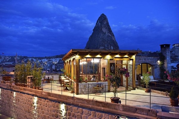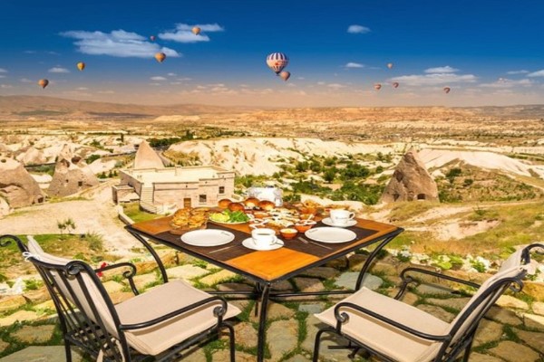 مطعم ميلوكال كابادوكيا حيث متعة مناظر المناطيد أثناء تناول الطعام.