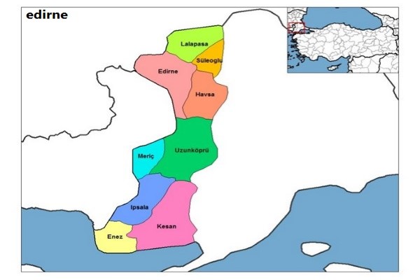 أدرنة من أجمل المدن التركية، وتبلغ مساحتها 6279 كم مربع والتي تقع في أقصى الجهة الشمالية الغربية،