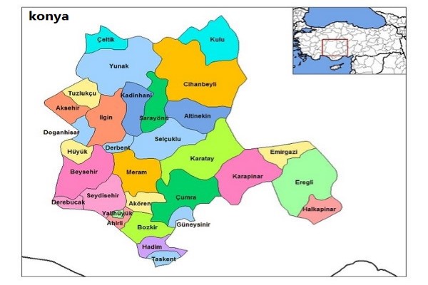 قونيه هي أكبر محافظات تركيا من حيث المساحة. حيث